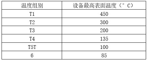 GB/T3836系列防爆標(biāo)準(zhǔn)規(guī)定了6個(gè)溫度組別,分別是: