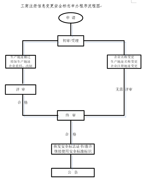(1)對(duì)持證人工商注冊(cè)信息變更的,經(jīng)審核符合要求的予以備案;對(duì)需安排現(xiàn)場評(píng)審進(jìn)一步核實(shí)的,在現(xiàn)場評(píng)審確認(rèn)變更符合安 全標(biāo)志有關(guān)管理規(guī)定后,換發(fā)安 全標(biāo)志證書。
