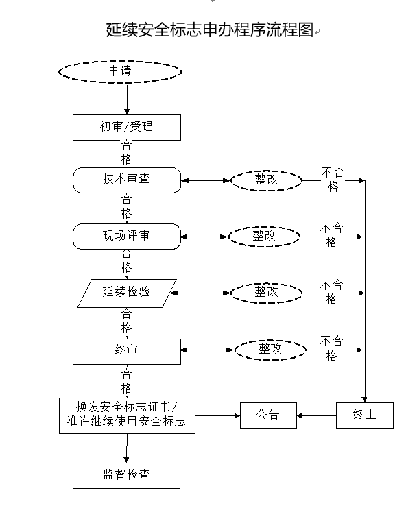 已取得安 全標(biāo)志的產(chǎn)品,其安 全標(biāo)志有效期屆滿需要延續(xù),且延續(xù)產(chǎn)品的標(biāo)準(zhǔn)、圖紙、主要零(元)部件及重要原材料明細(xì)表等均無(wú)變更的,如果需要繼續(xù)使用安 全標(biāo)志,必須在有效期屆滿前向國(guó)家機(jī)構(gòu)提出申請(qǐng)延續(xù)。